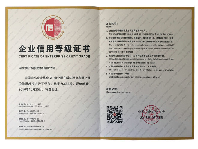 AAA信用等級(jí)證書(shū)