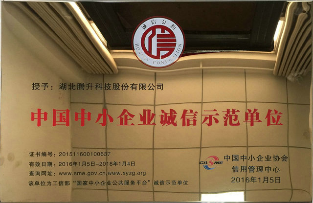 中國中小企業(yè)誠信示范單位牌匾