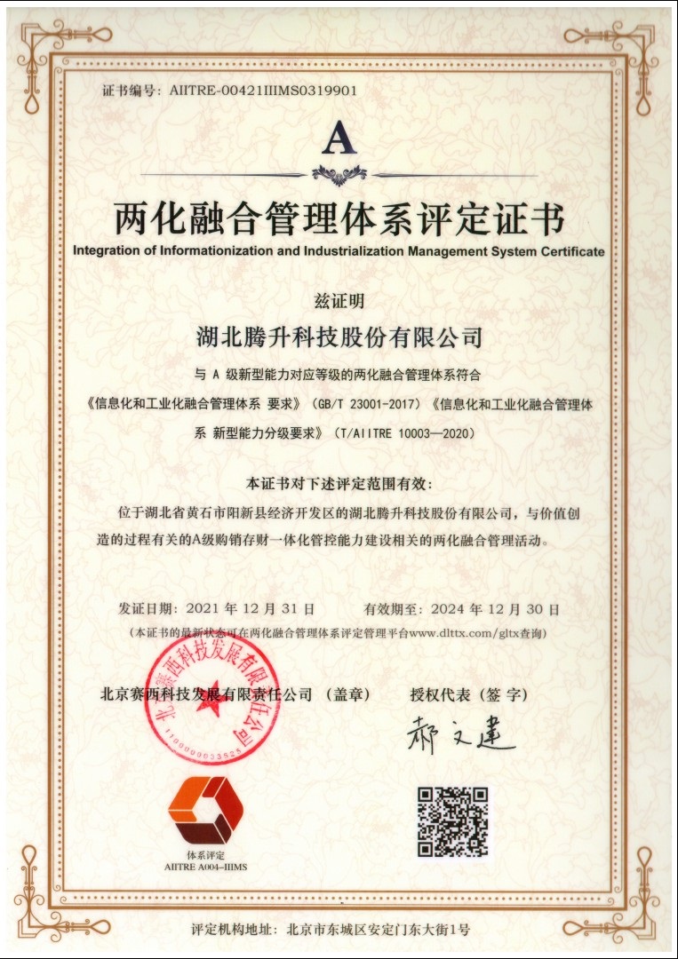 兩化融合項目證書--湖北騰升