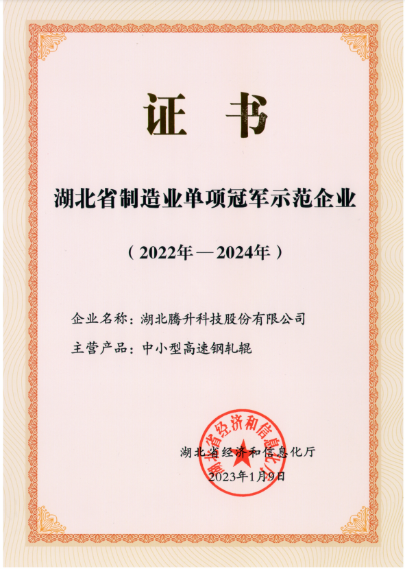 湖北省制造業(yè)單項冠軍示范企業(yè)